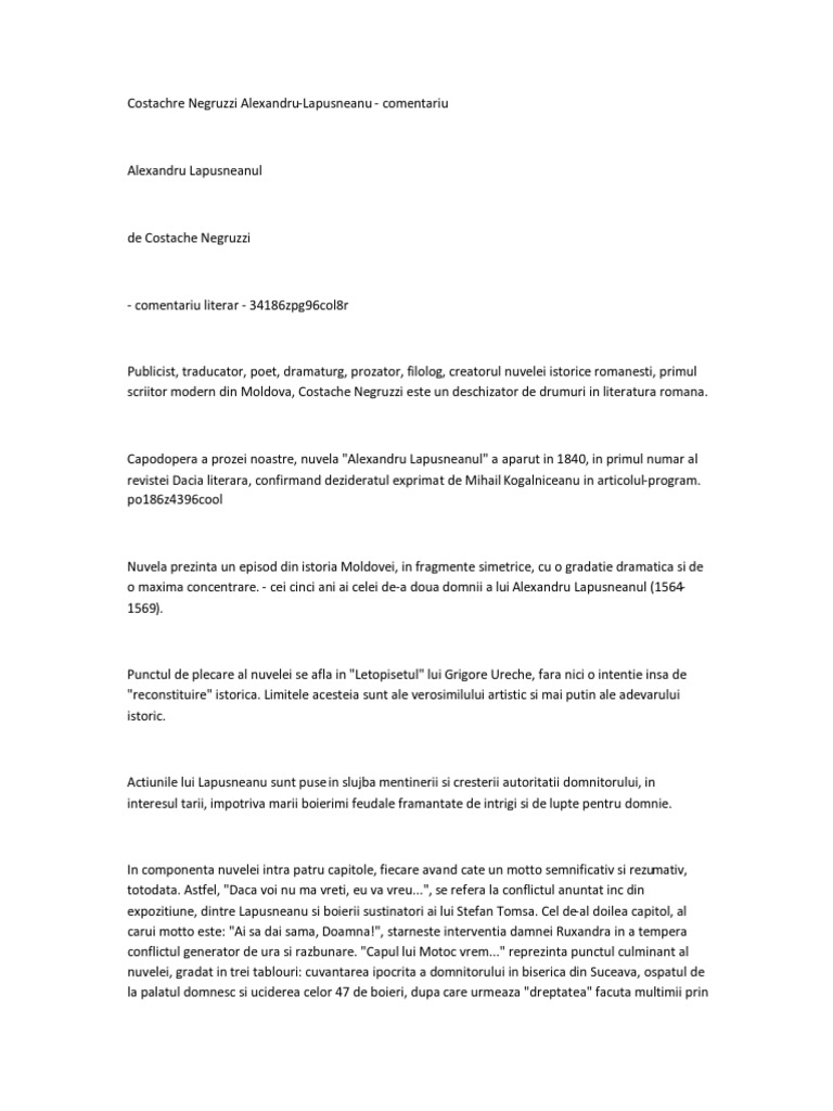 Alexandru Lapusneanu Rezumat Pe Capitole