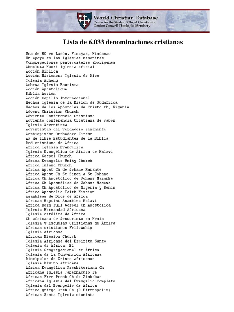 313705785 Lista De 6 033 Denominaciones Cristianas Pdf Iglesia Catolica Bautistas