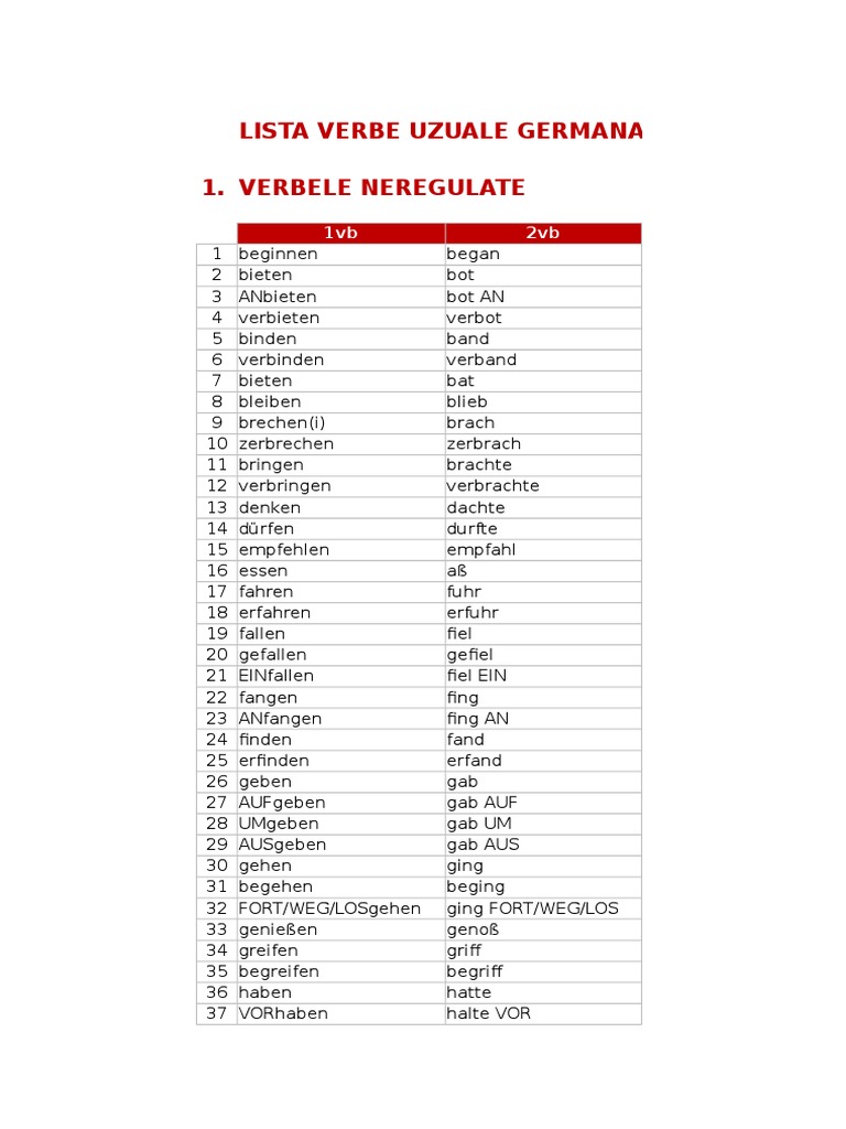 Lista Verbe Neregulate Germana Pdf